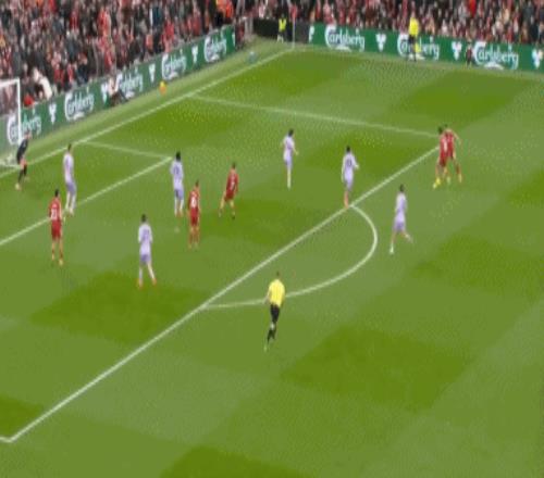 出场之后第一次触球,萨拉赫就险些制造进球。第27分钟,萨拉赫直塞,麦克阿利斯特禁区内回传,门将抢在埃基蒂克前没收皮球。