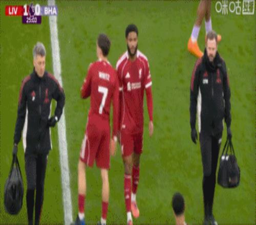 北京时间12月13日,英超联赛第16轮,利物浦坐镇主场迎战布莱顿。上半场,埃基蒂克开场闪击破门。随后送出助攻的乔-戈麦斯受伤被萨拉赫换下。迭戈-戈麦斯飞踹维尔茨染黄;下半场,萨拉赫角球进攻,埃基蒂克梅开二度。尾声阶段,小基耶萨无私横传,萨拉赫错失机会。最终利物浦主场2-0战胜布莱顿,收获两连胜。